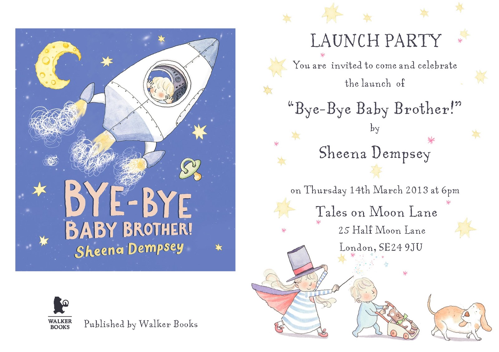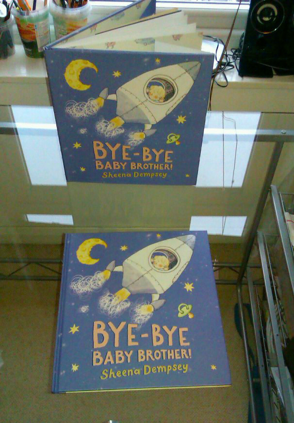 Advance copies of Bye-Bye Baby Brother! arrived in the post on Friday morning. To be honest, I was expecting the moment when I'd hold the finished thing in my hands to be something of an anti-climax having worked on it for so long. It definitely wasn't. I am so impressed with how everyone in Walker Books put it all together, the cover, the paper, the design, the shiny little bits on the rocket (I think there might be a more technical name for those but it eludes me right now, UV something-or-other).