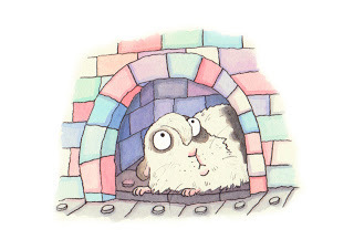 It began with the rather sinister idea of an inventor boy getting a guinea pig to try out his outlandish inventions on. Since then it has changed considerably and now it has a lot more heart. I seem to be establishing a pattern where I begin with two characters and one is inclined to torment the other. Then the publisher steps in and reins in the evil thoughts and what comes out is a picture book that resembles something more suitable for publication. Bruno is a spirited, inventive, energetic boy who is extremely excited about his new pet. Titch is just an innocent little guinea pig who has bitten off more than he can chew.