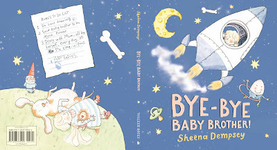 Here is a sneak peek at the cover of Bye-Bye Baby Brother! I say "sneak" peek as I'm not sure whether I'm actually supposed to post it as it's still not final final, I don't think, and parts of it might change.This post might self-destruct and disappear soon.