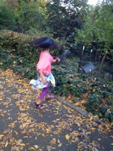 I’m jealous of folks who live in the Northeast. Instead of just feeling the change in the air, they can see it all around them. We recently returned from a trip to New York, and the view of New Jersey from the Cloisters was amazing. And all the falling leaves and crisp air encouraged some serious skipping and dancing and playing!