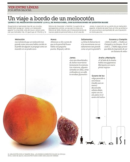 Bien, ¿estamos locos o qué? Vamos a ver, reflexionemos: un melocotón gigante, por grande que sea, poseerá una densidad de melocotón y ésta es aproximadamente de 1,1 gramos por centímetro cúbico. En cambio, el agua de mar, en condiciones normales de presión y temperatura, ronda los 1,025 gramos por centímetro cúbico. Como este valor resulta inferior al de la densidad del melocotón, éste debería hundirse e irse al fondo, ¿no es cierto? Ah, no, no. Perdón por la metedura de pata. Ahora recuerdo: el melocotón estaba hueco en su interior, donde vivían los bichitos colegas de James. Si no fuese así, no habría cuento y nuestro admirado Roald Dahl, autor de este fantástico relato, cuyo título es " James y el melocotón gigante " no lo podría haber escrito allá por 1961, al menos según la versión que nos ha llegado a todos nosotros.