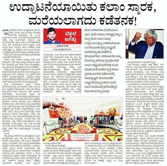 ಮೊನ್ನೆ ಗುರುವಾರದಂದು ಪ್ರಧಾನಿ ನರೇಂದ್ರ ಮೋದಿಯವರು ಚೆನ್ನೈನಲ್ಲಿ ಡಿಆರ್ಡಿಒ ಅವರು ನಿರ್ಮಿಸಿದ ಕಲಾಂ ಸ್ಮಾರಕವನ್ನು ಉದ್ಘಾಟಿಸಿದರು. ಇದರ ಜತೆಗೆ ನರೇಂದ್ರ ಮೋದಿಯವರು ಕಲಾಂ ಕುಟುಂಬದ ಜತೆಗೆ ಆರಾಮಾಗಿ ಮಾತನಾಡುತ್ತಾ, ಕುಟುಂಬದವರು ಪ್ರಧಾನಿ ಜತೆ ಮಾತಾಡುತ್ತಿದ್ದೇವೆಂಬುದೇ ತಿಳಿಯದಷ್ಟು ಹತ್ತಿರವಾಗಿಬಿಟ್ಟರು. ಅತ್ಯಂತ ವೇಗದಲ್ಲಿ ನಿರ್ಮಾಣಗೊಂಡ ಕಲಾಂರ ಆ ಸ್ಮಾರಕವನ್ನು ನೋಡಿದಾಗ ಅನಿಸಿದ್ದು, ಕಲಾಂರಲ್ಲಿ ಜನರು ಅಂಥದ್ದೇನು ಕಂಡುಕೊಂಡಿದ್ದಾರೆ.