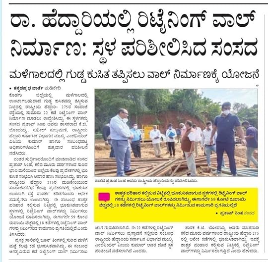 ರಾ. ಹೆದ್ದಾರಿಯಲ್ಲಿ ರಿಟೈನಿಂಗ್ ವಾಲ್ ನಿರ್ಮಾಣ: ಸ್ಥಳ ಪರಿಶೀಲಿಸಿದ ಸಂಸದ