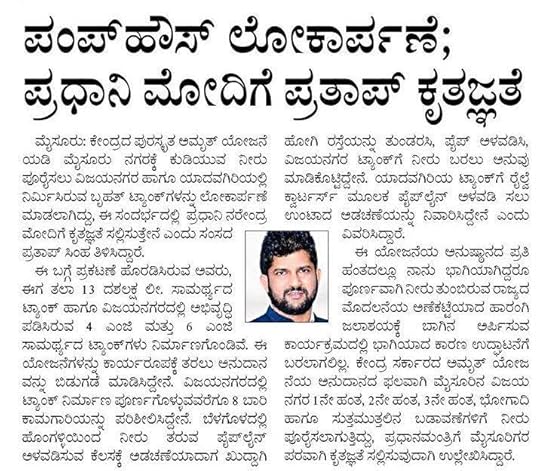 ಪಂಪ್ ಹೌಸ್ ಲೋಕಾರ್ಪಣೆ; ಪ್ರಧಾನಿ ಮೋದಿಗೆ ಪ್ರತಾಪ್ ಕೃತಜ್ಞತೆ