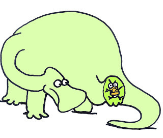 Anadiplosis: From the Greek, anidiploun, "to double back," it sounds like the name of one of the larger and stupider dinosaurs, but as anyone can tell you, it's the rhetorical repetition of a word or phrase at the end of one sentence at the beginning of the next. I come across this sort of thing all the time, reading my tenth graders' essays: "This report is about Shakespeare. Shakespeare wrote a play called Julius Caesar." Julius Caesar is about Brutus. Brutus is the one who killed Caesar. Caesar was killed by Brutus and some other people. The other people who killed Caesar were..." And like that.This isn't anadiplosis, though, because though it's got gobs of repetition, it ain't rhetorical. Rhetorical means the writer's doing it on purpose, for an effect, and not just being lazy. A better example, not much better, is when Yoda says, "Fear is the path to the dark side. Fear leads to anger. Anger leads to hate. Hate leads to suffering. I sense much fear in you." Mostly I'm afraid of running into someone that talks like Yoda. An even better example of anadiplosis, is Whitman's, "When I give, I give myself," or Byron's, "The mountains look on Marathon, and Marathon looks on the sea."