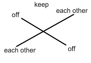 Years ago, it was pointed out to me in a literature class that chiasmus - a figure of speech involving a reversal of terms as in Robert Frost's misanthropic aphorism, "Keep off each other and keep each other off" - literally means crossing, so that this figure of speech can be represented graphically: