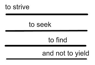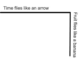 It looks a little like a flag or a banner, which perhaps Ulysses had on the prow of his ship as he spoke these words.Not quite so smooth is a non sequitur, literally something that "does not follow." We think Groucho Marx is making perfect sense until he executes and abrubt right turn in "time flies like an arrow, but fruit flies like a banana."