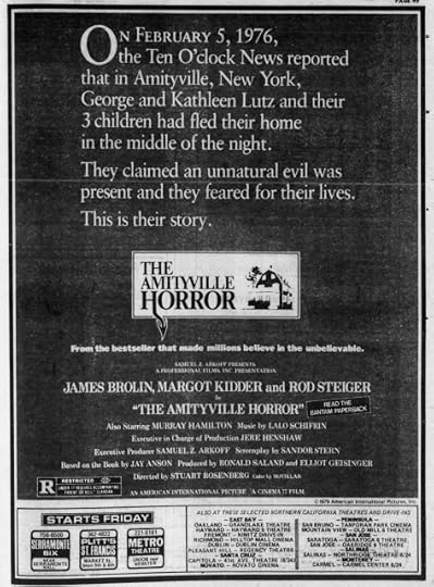 While I remember the theatrical release of The Amityville Horror film adaptation, I did not see it on the big screen. I did read the paperback, though. Several times, in fact. I also remember the debunking the haunting got on the show That's Incredible!