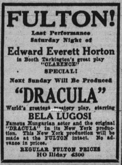 While Universal's film adaptation of Dracula would not start shooting until the very end of September. There is a very real possibility that, at the time this traveling production of the Broadway play performed in Oakland, Bela Lugosi would have known that he had been cast to play Dracula in the film version.
