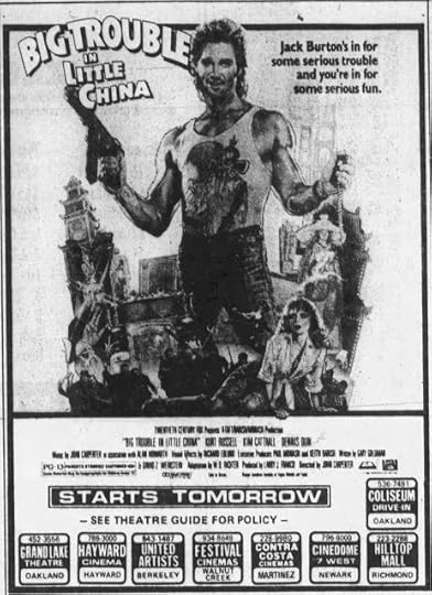 As much as I was looking forward to seeing this on the big screen, I was unable to. I believe I might have been overseas at the time, in Hong Kong, visiting family when it opened. By the time I returned to the United States, Big Trouble in Little China, having sunk like a stone at the box office, had vanished from theaters. So it goes.