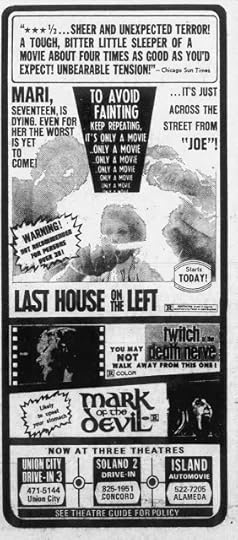 The Last House on the Left (1972) / Twitch of the Death Nerve [A Bay of Blood, Ecologia del Delitto (1971)] / Mark of the Devil [Hexen bis aufs Blut gequält (1970)] -Newspaper Ad