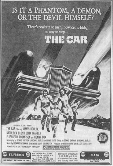 Check out The Car's co-feature at the St. Francis, though. It was Death Race 2000!?! Man, do I envy the audiences that were able to enjoy that double-bill of vehicular carnage.
