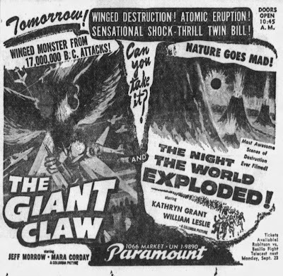 The Giant Claw (1957) / - The Night The World Exploded (1957) - Newspaper Ad