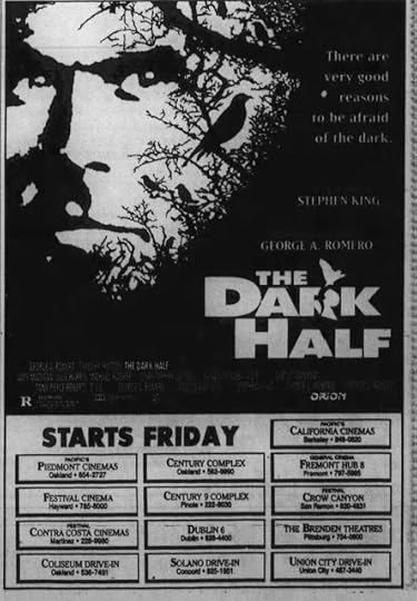 I was super excited at being able to see The Dark Half at a 'sneak preview' screening held at the Alexandria Theater in San Francisco. But the muted and indifferent reaction of the packed house proved to be a dire foreshadowing of the film's lackluster performance at the box office.