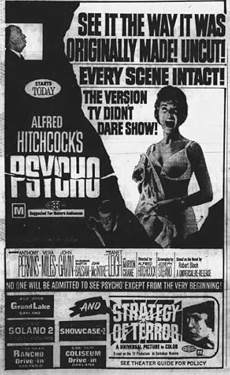 Wednesday, April 16, 1969 saw a re-release of Alfred Hitchcock's Psycho hit San Francisco Bay Area theaters and drive-ins. Coupled with this re-release was Strategy of Terror, a film created by editing together a two-parter episode of Kraft Suspense Theatre into a single feature.