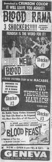 Color Me Blood Red (1965) / Two Thousand Maniacs (1964) / Blood Feast (1963) - Newspaper Ad