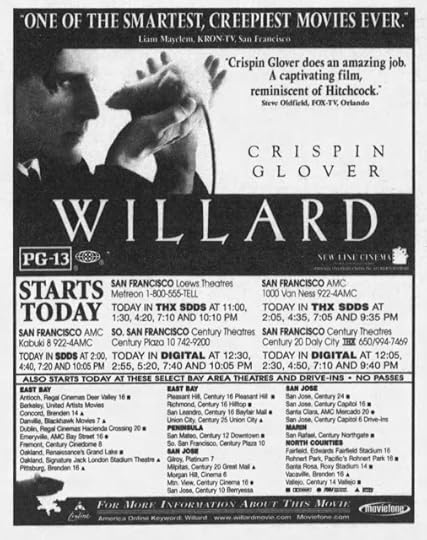 Although broadcasts of the original Willard (1971) were a television viewing staple of my childhood and early adolescence, I have yet to watch its 2003 remake. There are a variety of reasons and excuses for my avoiding it. The most current one is what happens to that poor cat. The first Willard (Bruce Davison) at least had the decency to take the one he got to a shelter.