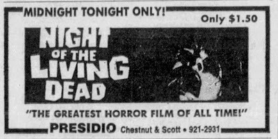 Here's a midnight show I would have loved to been able to see. Too bad I was only 5 years old at the time, not living in San Francisco, and Night of the Living Dead was a verboten film... again, at that time.
