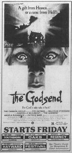 John Stanley's review of the film in his Revenge of the Creature Features Movie Guide describes The Godsend as "a fair British horror film focusing on psychological aspects rather than grisly details." That sounds promising. Maybe I should watch this on a double-bill with Cathy's Curse? Just a thought.