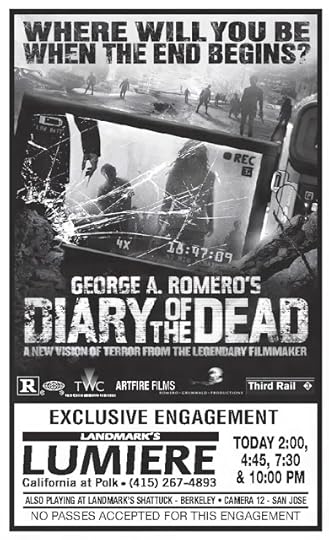 When Diary of the Dead got a paltry theatrical release in 2008, I hoofed it over to the Landmark on Shattuck Avenue, in Berkeley, so I could see it on the big screen.