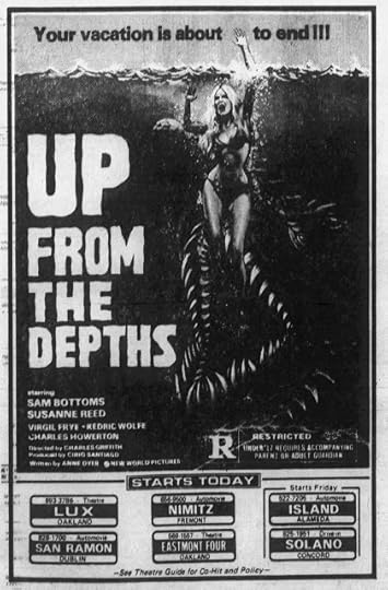 I remember being freaked out by this artwork for Up from the Depths, but the movie was not booked at any venues I would have been able, much less even allowed, to go to in order to see it on the big screen. If I had even dared to. This ad made the movie look pretty darn scary to me.