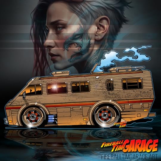 Today’s SKETCH celebrates unique STORY… and not all interesting characters are people. But along with the arc of the female BLUE SPIDER, the 1986 FLEETWOOD BOUNDER RV (The Krystal Ship) was a major player in BB, as are all CARS in respective films. Maybe she finds it in a dump? Or lost in the desert?