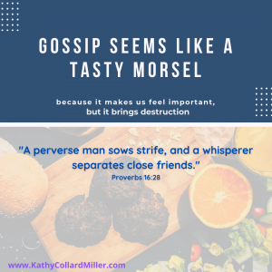 My most painful memory of choosing gossip is when I wrote three sentences about a friend of mine in one of my early books. (Don’t worry; it’s out of print). I didn’t use her name and I thought, “She’ll know this is her and it will help her see the truth about her struggle. It will help her.”