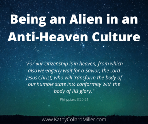 We are “aliens” surrounded by the “hot weather” of an anti-heaven culture, yet our “clothing” is heavenly. We’re supposed to be “dressed” for heaven by looking at our lives with the “warm clothing” of our future eternity. We awkwardly wear our earthly clothing and don’t fit in within the culture of immorality, distrust of God, self-dependence, and self-absorption. Our spiritual appetites are strange to those who don’t have a passport for heaven, but once we reach our destination and are transformed into our heavenly permanent bodies, our spiritual perspective will seem completely normal.
