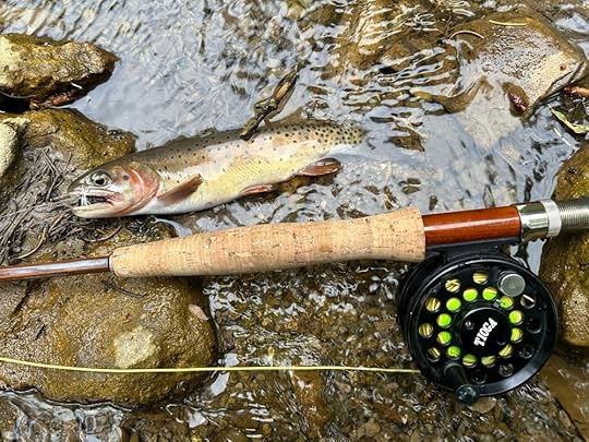 On Thursday, July 3, 2025, I snuck away from work at noon and decided to take my new bamboo rod up to my favorite cutthroat stream. Upon reaching my destination, I put together and strung up the bamboo rod and tied on a Renegade. After climbing the barbed-wire fence, I stepped into the stream and immediately saw many cutthroat in a shallow riffle. I cast the fly to the fish, one took, but I was slow and missed on the strike. The fish spooked.