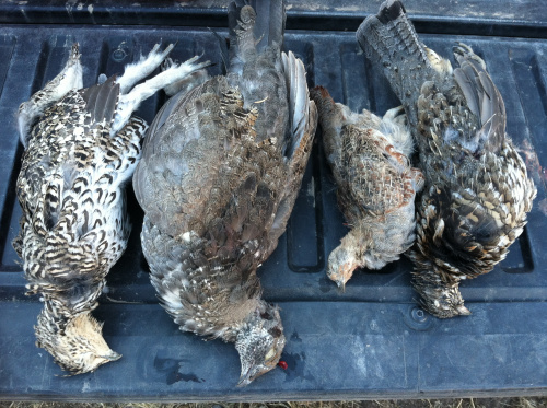 The first two birds of the quartet: a Hun and a sharptail taken from Tommy’s Covey.