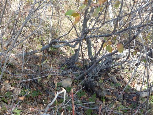 At the truck, we discussed going to Grouse Rock to hunt forest grouse, but I wanted to go after those sharptails that Shawn described to try and fill my limit. Everyone was agreeable to me walking this draw and Shawn told me right where to go. Sure enough, there were still lots of birds in the draw, but not on the sage hillside on the left as Shawn had told me. I only found one there, which I missed twice. The birds were on the right-hand side in the choke cherries. I missed another one that flew towards me and then up the draw. So that was four misses. As I observed birds coming out of the chokecherries, I felt this was the side to be on. I actually marked down where one had settled.