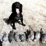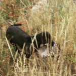 We headed up the logging road, but Ellie wouldn’t get into the creek bottom, but she persisted to run on the uphill side in the sage. I was getting a little peeved and kept calling here back into the creek. Halfway up the road, Ellie got back into the sage. Just as I was about to called her back a grouse vaulted out of the sage and sped towards the choke cherries. I stopped it with the Ithaca Flues 12 and an ounce of RST 7&1/2’s. Ellie flushed a second grouse from the sage to the same fate. I quickly reloaded just before a third grouse exploded from the sage. However, this grouse made it safely to the dense evergreens on the other side of the creek after a volley of a double-barrel salute. I was still ecstatic with Ellie and my almost grouse double.