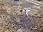 When we made it back to the truck, we decided to see if we could find chukars up higher on the ridge. Ron and I hunted up on top of the ridge with Rainey and Gretchen. In a little divot where one would expect her to find a chukar, Rainey pointed a small covey of Huns and I dropped one with the 16. I hustled over to help Rainey find it, but even though she scoured the area with intensity, we could not locate the downed bird. I wanted to find that bird so bad because it was the first bird taken over one of Rainey’s bona fide points. Gretchen, the old pro, came over and picked up the winged bird about fifteen yards to the right of where it fell.