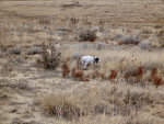My pup, Rainey, and I continued to work the sage around our side of the divot and I noticed some intense birdiness on her part. As a puppy, she points everything including grasshoppers, butterflies, mice, and tweety birds, but her behavior was a little more focused than usual. I followed her as she worked the tendril of scent and my vigilance paid off. A grouse got up in front of us presenting a quartering right to left shot. I missed the first shot, but swung ahead, and without even conscientiously thinking, tugged the back trigger. The huge bird tumbled from the sky.