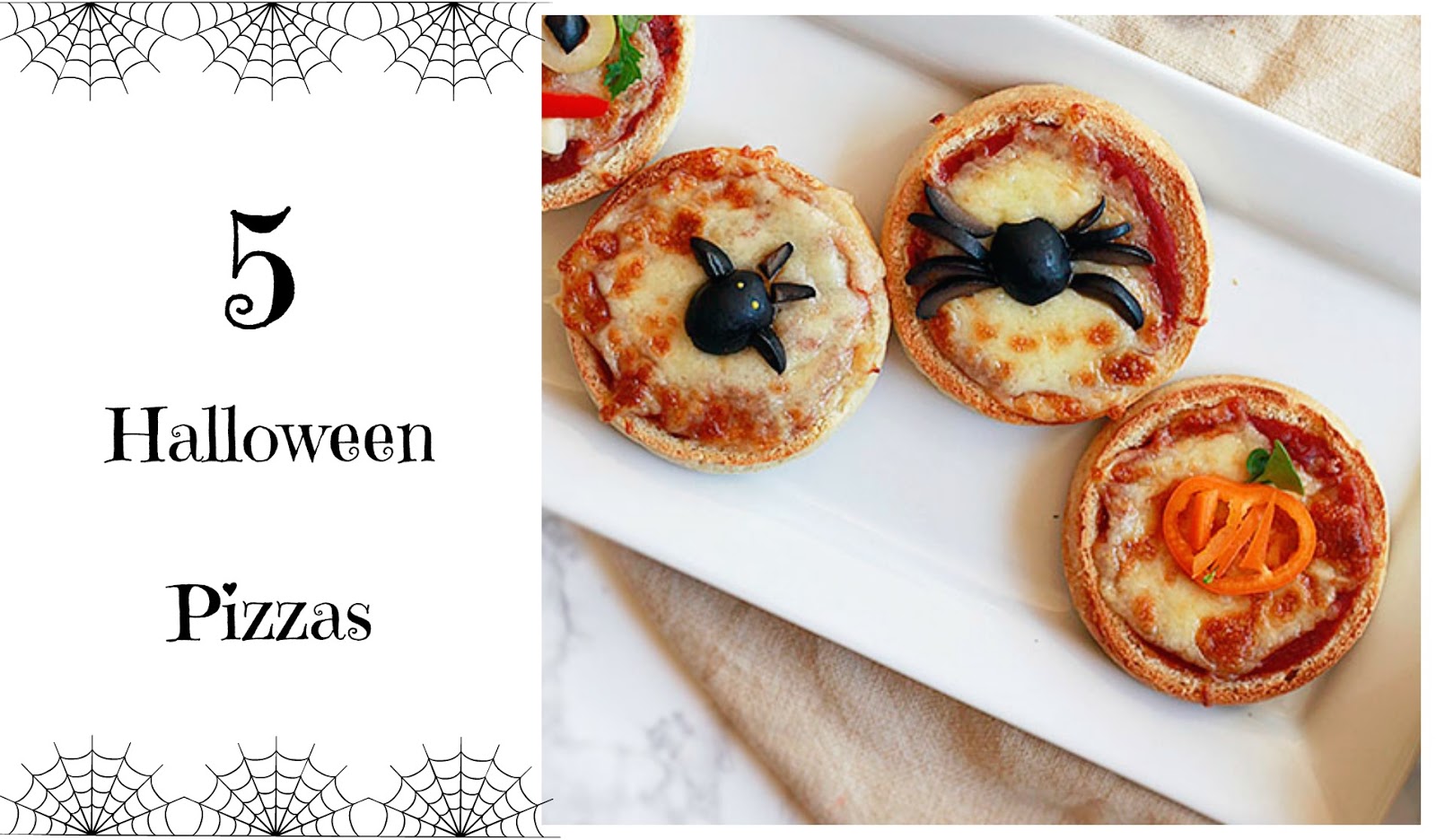 Easy and fun Halloween pizzas with spiders, bats, monster faces and eyes, and pumpkins! These Halloween pizzas are perfect for Halloween parties or Halloween dinner.