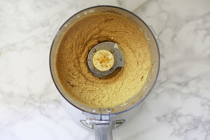 I used canned (actually it was boxed) pumpkin, but you could also use roasted butternut squash or sweet potato and it would be delicious! For this pumpkin hummus, I was aiming for flavors like in these Butternut Squash Toasts because they are just so divine. Though this hummus has fall spices, it's not spicy. I actually would have liked a little heat here. If you feel that way, try using chipotle instead of smoked paprika. I love garnishing bowls of hummus with veggies, seeds and herbs. Pomegranate seeds are one of my favorite toppings, but here I used cubed roasted beets, pepitas, edible flower petals, and sage.