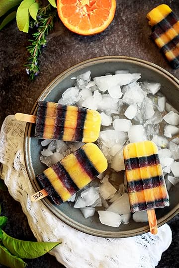 Spooky black and orange Halloween ice pops with a secret super food ingredient. Ingredients2 cups 100% grape juice (the darker the better)2 tablespoons spirulina powder2 cups pure fresh orange juice1/3 cup blackberries, gently cut into small pieces (optional)InstructionsIn a large jar, thoroughly mix together the grape juice and spirulina. I used a small whisk for this task, a milk frother also works nicely. The color should be quite dark but won't be completely black. Pour one tablespoon of orange juice into the bottom of each ice pop mold. Place the top of the mold on and insert popsicle sticks. Make sure the popsicle sticks are in the juice. If they don't reach the juice, add more until they do. Freeze until solid, at least 30 minutes. Remove the mold from the freezer and remove the lid. Pour a tablespoon of dark grape juice mixture over the orange layer, working quickly so the orange layer does not begin to melt. Drop 2-3 pieces of blackberry into the liquid black layer. Return the mold the the freezer (lid does not need to be on). Freeze until solid, at least 30 minutes. Pour a tablespoon of the orange juice over the black layer and freeze. Continue in this fashion until the molds are full, keeping the juices in the refrigerator while freezing layers. Leave in the freezer until ready to serve! Yield: Makes 10 classic sized ice pops