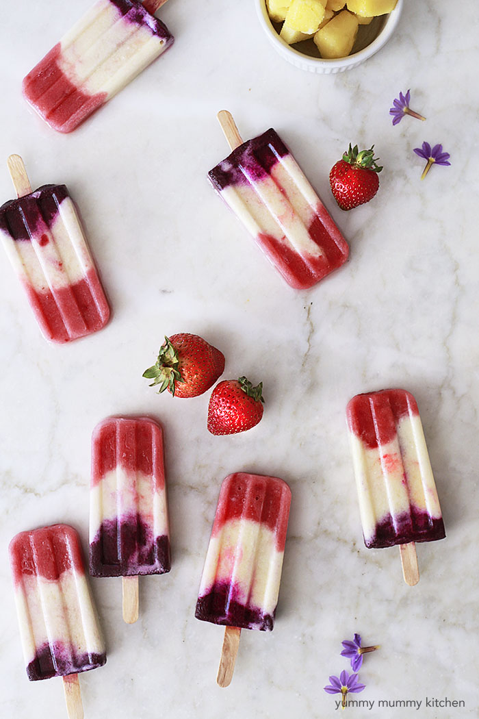 Red, White, and Blue Berry Colada PopsiclesBy Yummy Mummy Kitchen