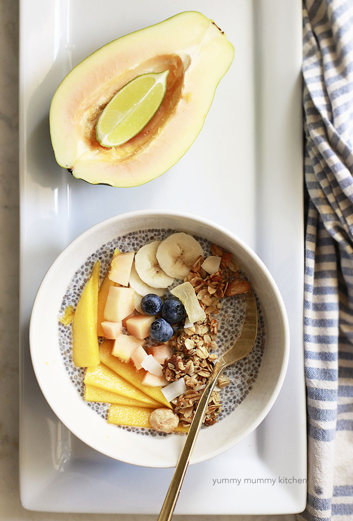 Tags: breakfast, brunch, fruit, tropical, hawaii, chia pudding, granola