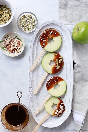 If there's one thing (okay after Halloween candy) that my kids ask for during the autumn months it's caramel apples. I know they are cute and festive, but personally I've never really understood the appeal of the caramel apple. Caramel apples are traditionally just so sticky, sickeningly sweet, and kind of hard to sink your teeth into. These caramel apple slices served in lollipop form, or simply arranged on a platter, are just the right size and made without any refined sugar. Apples served with this caramel dip makes such a fun autumn party treat. This caramel apple dip would be perfect for any Halloween or Thanksgiving party.