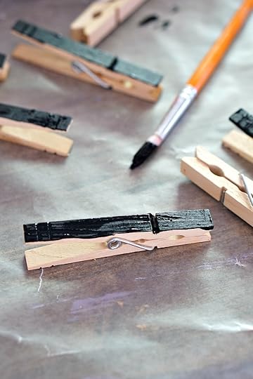 We used regular wooden clothespins for our bats' bodies, and painted them black. I think some black or silver glitter would make these even better! Some craft stores carry clothespins in a variety of colors, but we used what we already had in our craft supplies. For the bats' eyes we tried small google eyes as well as painted on eyes.