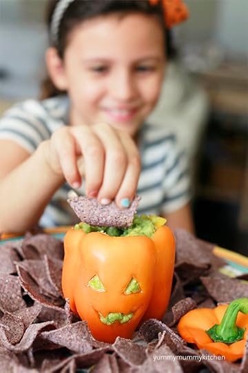 MANGO GUACAMOLE IN JACK-O-LANTERN PEPPERS