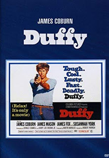Duffy, 1968, takes place in Tangiers. Here we have a Sixties setting with a retired smuggler giving piracy a try when convinced that it will be a Happening. From greed, the Coburn rogue's moved on to getting back into the groove and acting to be 'with it.' (The film's original title was, in fact, Avec-Avec.)
