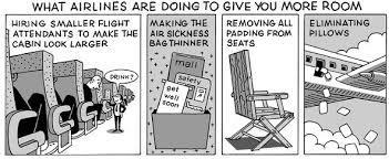 Few experiences are as universal to Americans as the shared degradation and misery of flying on our nation's air carriers. These corporate behemoths have somehow managed to wrap up everything wrong with this country and present it to us as a package deal: income inequality, corporate indifference, dwindling services, automation and skyrocketing prices all combined to make flying a tortuous chore rather than a pleasure, particularly in the last ten years. It's no different than fiscal austerity, really--just a calculated effort to push the limits of greed for a tiny minority to the point where Americans won't tolerate any more, then convincing us that such a drastically diminished quality of life is the "new normal."And Americans continue to suffer it, because in most cases they feel they have to. For many, travel is a necessity for their livelihood. For others with scattered families travel is the only way to maintain personal connections. The airlines understand they're fulfilling a need, and at this point they've abandoned any pretense of actually caring about what their customers think of them. Thus an unnamed major carrier is considering something called "economy minus"where it can shove more people into its metal cylinders, gutting personal legroom and offering no services at all except (perhaps) a toilet.The power of the corporations to collude is nowhere more visible than among the airlines. It's practically impossible to keep track of which airline has merged with another. There are, it seems, only about two or three actual airlines that carry the vast majority of passengers in the Continental U.S. Deregulation, once promoted to "foster competition," and a near-constant train of mergers have created a perverse state where the airlines can now collude together to provide poorer levels of service.