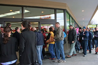I found my store in Ballard, an upscale Seattle 'hood. It's clean and bright with tiled floors. Here's a photo taken of the store on its opening day,
