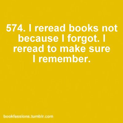 But the one exception stunned me: This reader claimed that in his adult he has never re-read a book. He gets what he needs from a book, then moves on...and can recall influential passages from books he read fifteen years ago. The key phrases there would be getting all he needs from a book--and recalling influential passages.