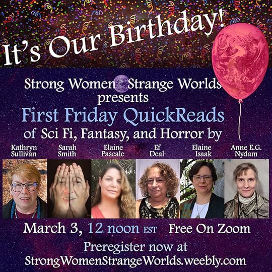 Did you miss the in-person launch event? That’s okay–Elaine will be reading, alongside 5 other awesome authors, on Friday, March 3 at noon Eastern time. This event is free to attend, but you do have to register by clicking on the link below! Hope to see you there!