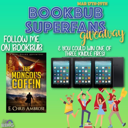 Generally, I do one of these every couple of months–it’s a chance to share my stuff with other authors’ audiences, bring some more people on board with the Tomb Reader (my thriller newsletter) and get some more followers on Bookbub (which is super helpful to me, because it can unlock some other stuff that Bookbub has for authors).