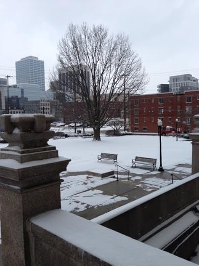 At least the snow is pretty to look at. This is a view from the entrance to my library today.