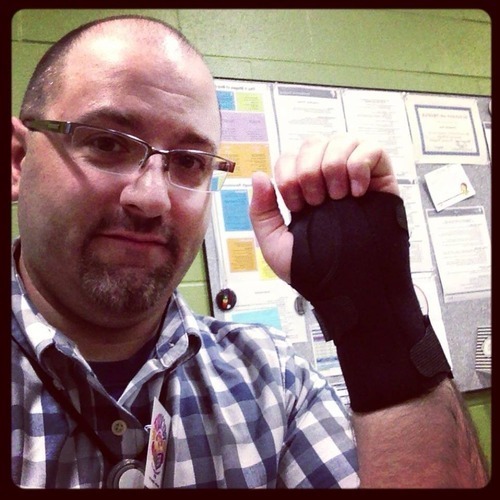 My newest accessory - a carpal tunnel wrist guard. I guess...